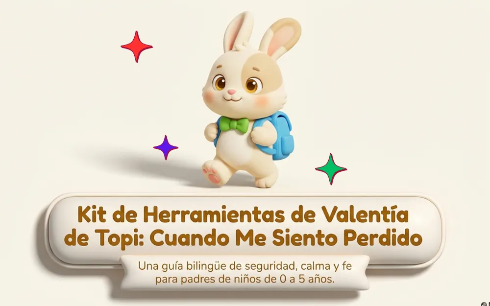 Topi no es solo un cuento tierno: es una historia bilingüe sobre fe, familia y valentía. Topi ora con su familia, se queda solo por accidente, siente miedo, recuerda orar, recibe ayuda en el camino y finalmente se reencuentra con Caleb, Ainara y Amyr.